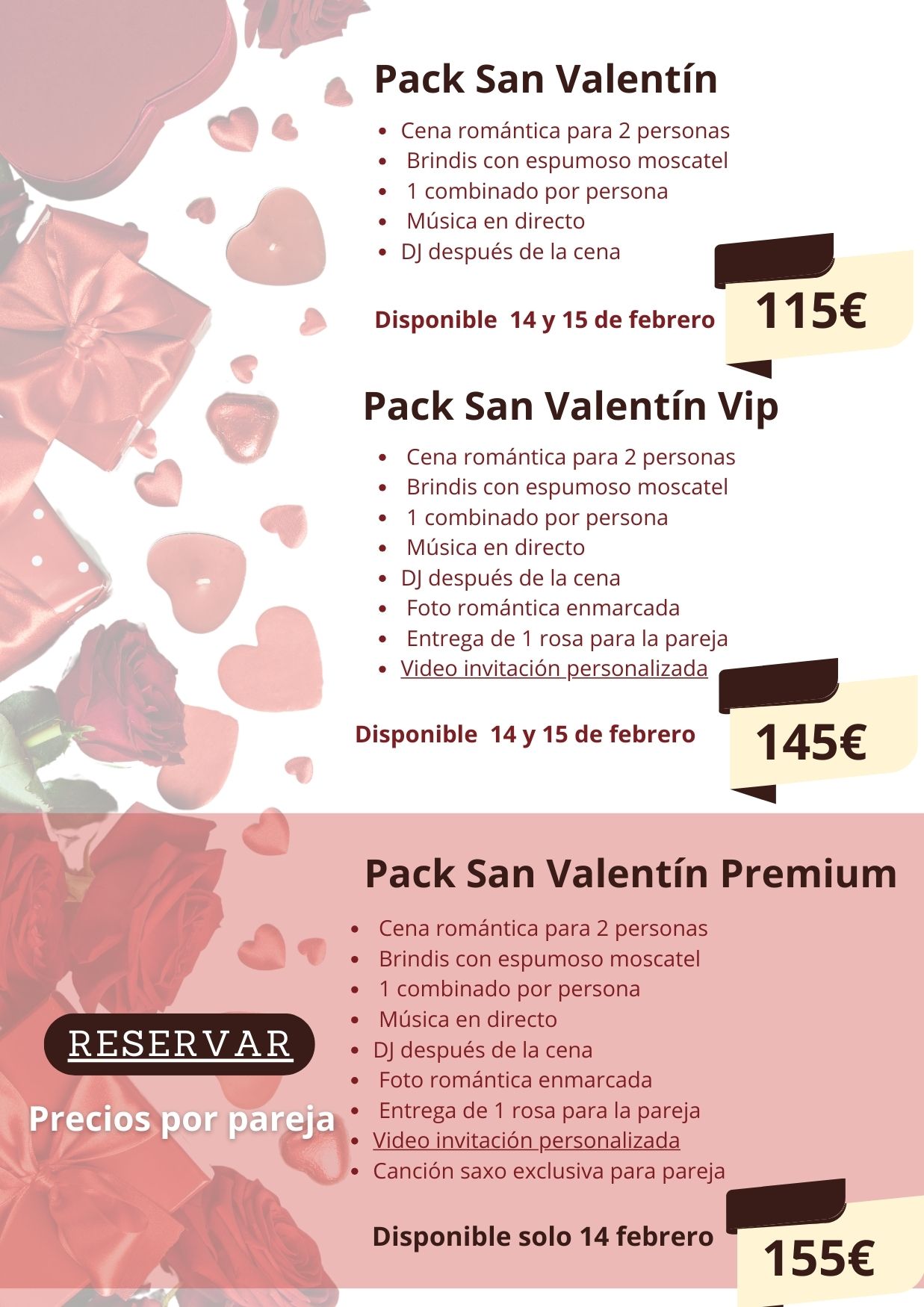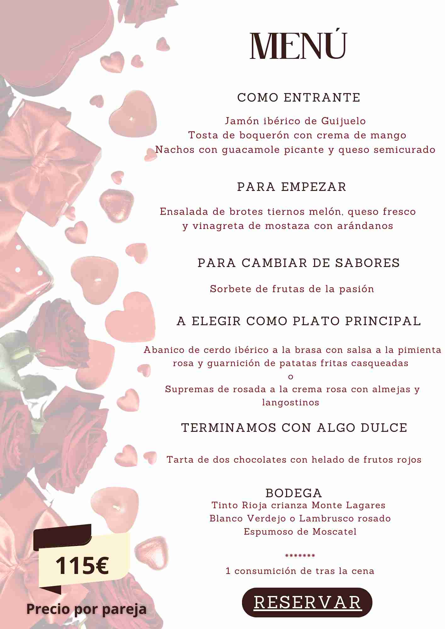 - Cena especial de San Valentín: Menú gourmet elaborado para la ocasión.