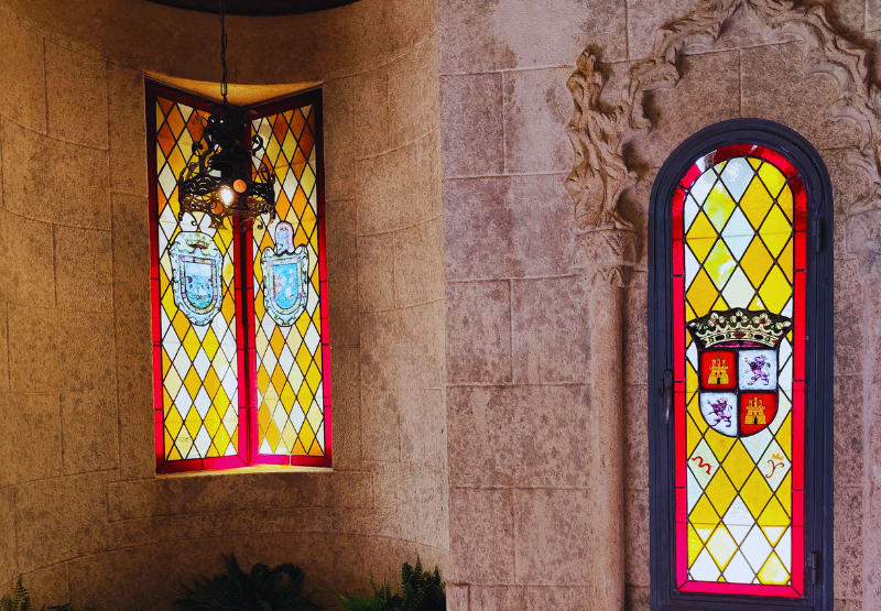 -Homenaje a los Reyes Católicos: abundan los escudos y referencias a Isabel y Fernando, figuras clave que apoyaron la visión de Colón.